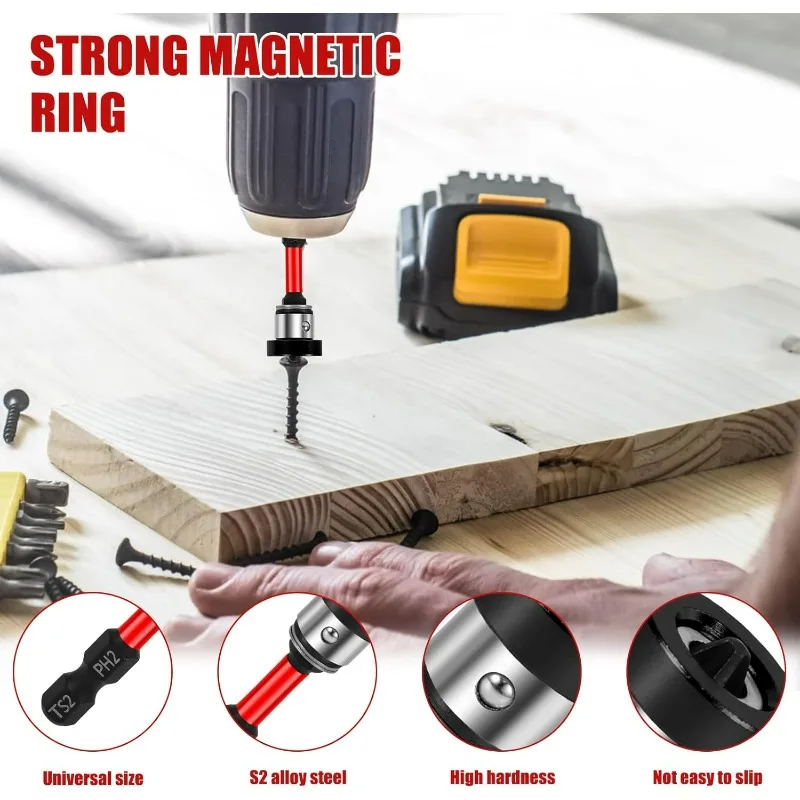 A ponta magnética mantém o parafuso firme do início ao fim, impedindo deslizes, quedas e retrabalho — ideal para quem quer produtividade sem dor de cabeça.