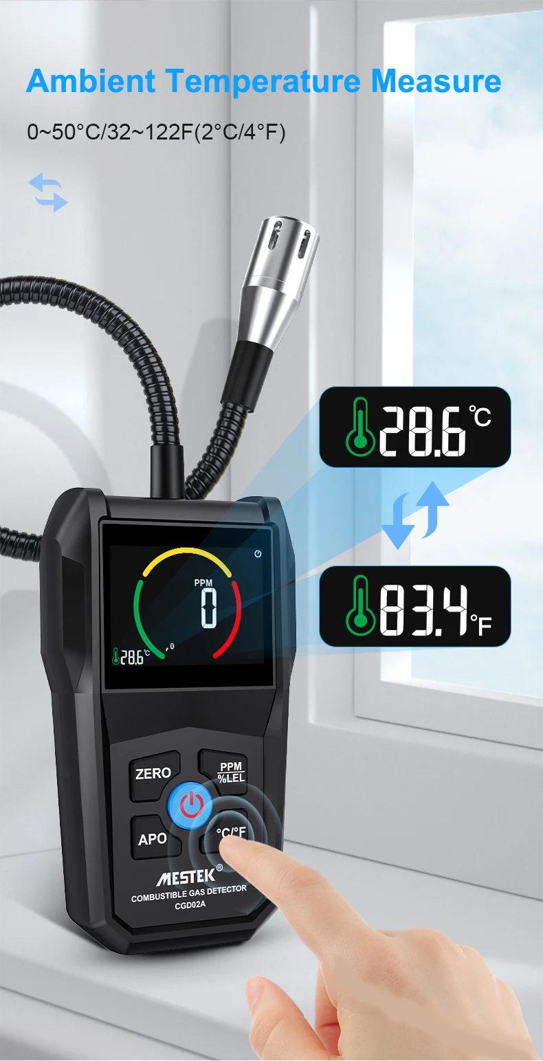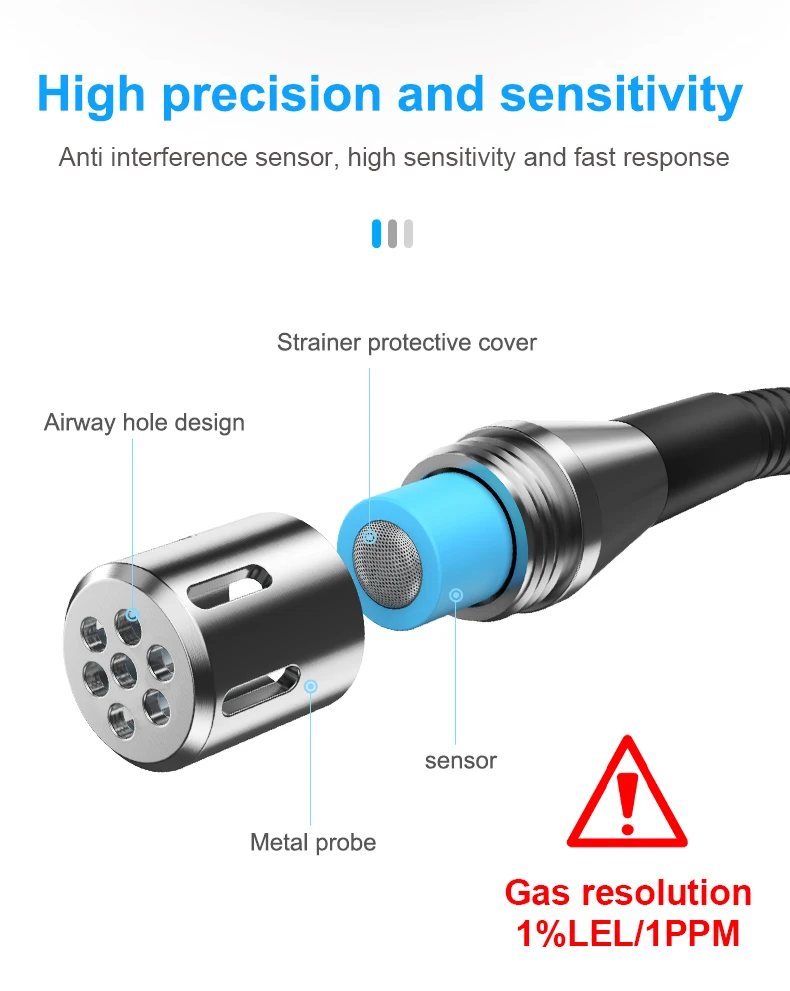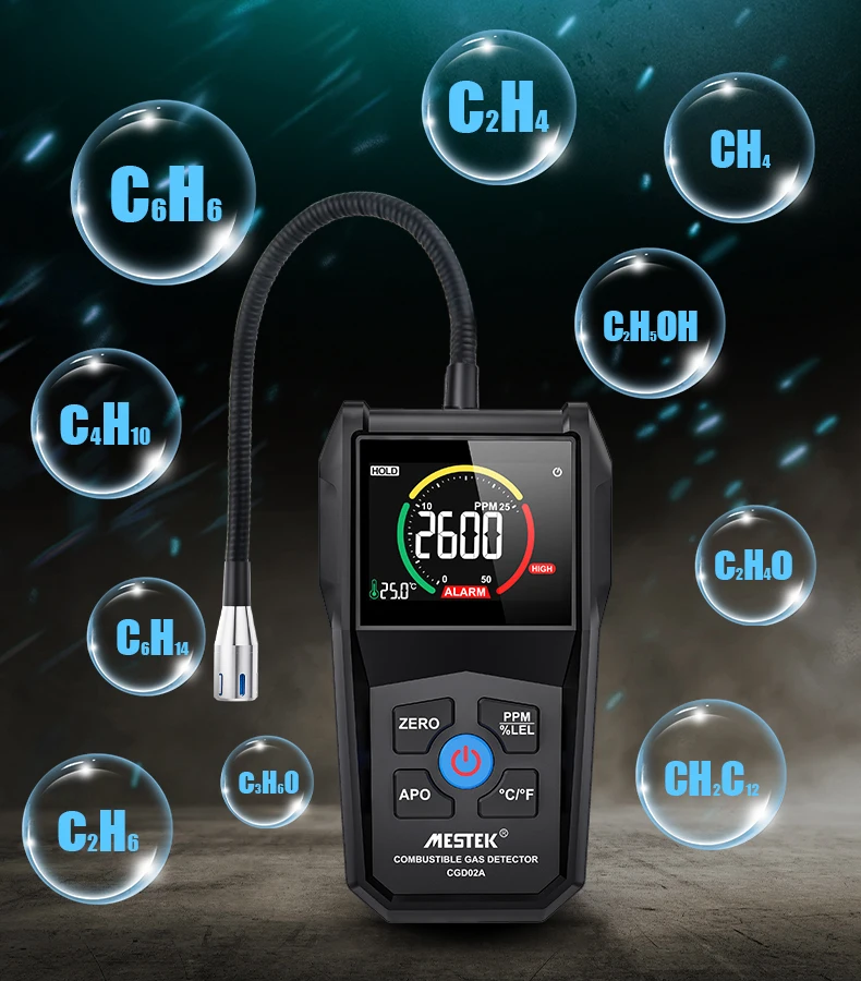 💨 Alta sensibilidade e precisão — mede vários tipos de gases inflamáveis com total confiabilidade.