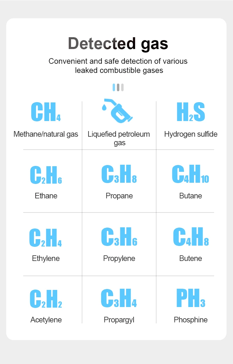 Detecte rapidamente gases perigosos como metano, butano e gasolina antes que se espalhem, garantindo um ambiente seguro e tranquilo para sua família ou equipe.